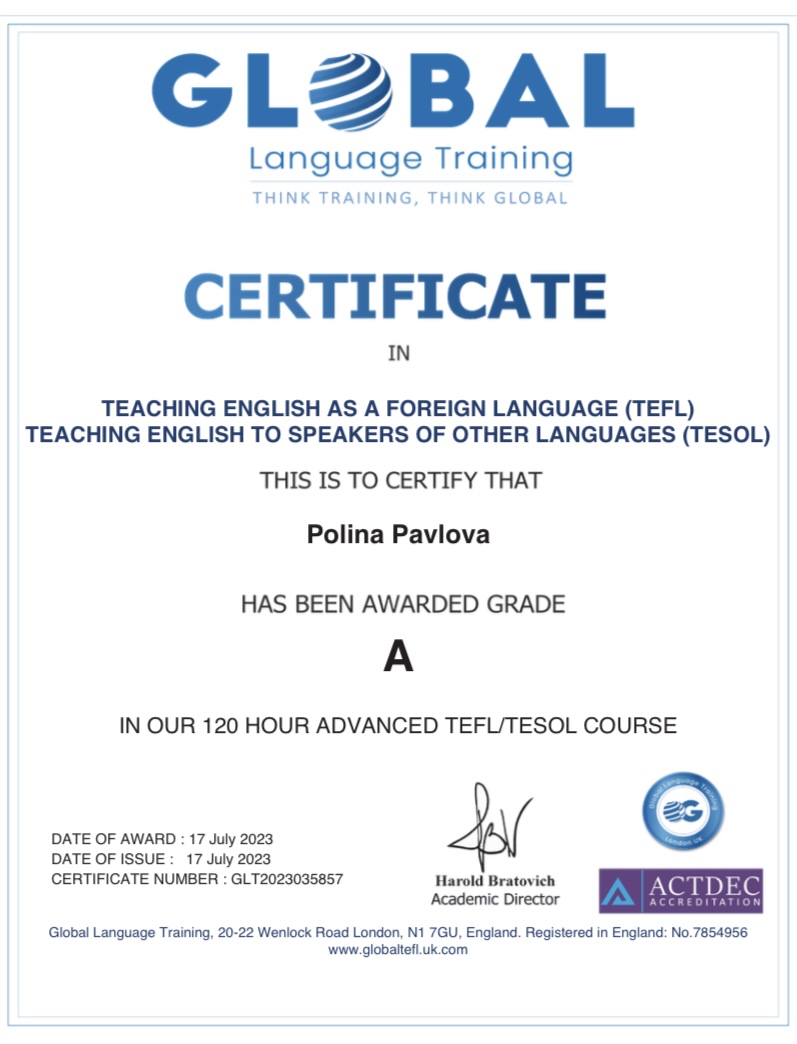 Меня зовут Полина! Я репетитор по английскому и преподаю уже четвертый год, после моих занятий ученики перестают бояться говорить и влюбляются в язык 🌷