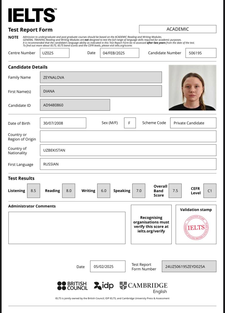 Обучаю учеников любых возрастов. Также могу помочь с подготовкой к международному экзамену IELTS(Academic и General).Мой уровень английского — C1, результат IELTS — 7.5 (Academic).